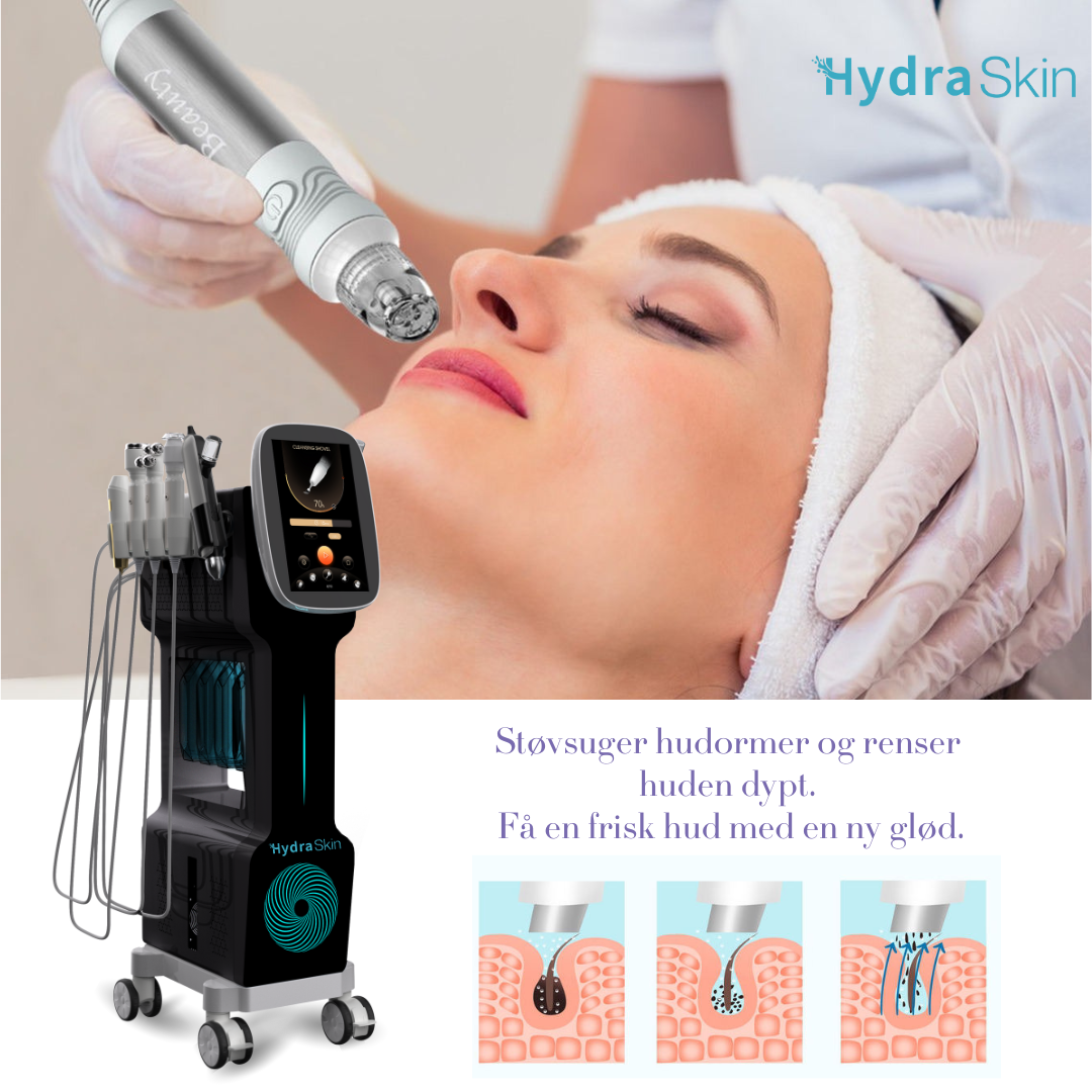 Hydra Skin, også kjent som HydraFacial, er en revolusjonerende multifunksjonell hudbehandling som tilbyr dyptgående rens, eksfoliering og hydrering i én enkel prosedyre. Med 9 forskjellige teknologier i samme plattform kan behandlingen skreddersys for å behandle alt fra aldringstegn og kviser til forstørrede porer og ujevn hudtone. Behandlingen er ikke-invasiv og passer for alle hudtyper.